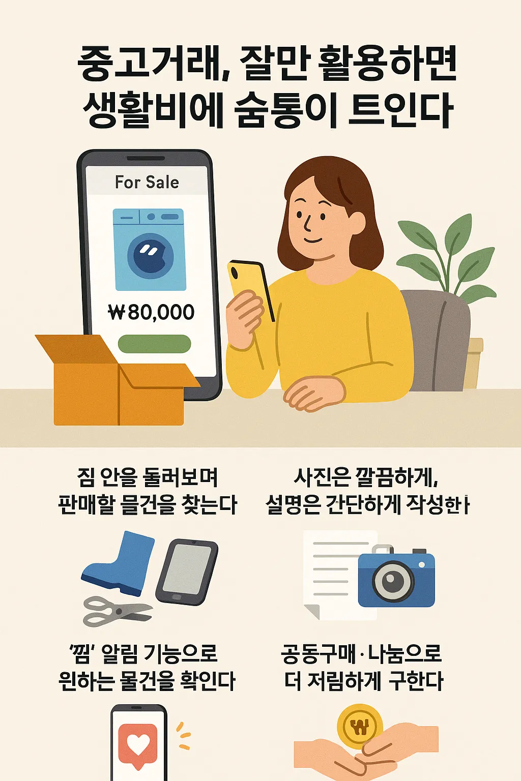 책장에 오래된 가전이 쌓여 있거나, 안 쓰는 운동기구가 자리만 차지하고 있다면 지금이 바로 중고거래를 시작할 때입니다. 특히 요즘은 중고 거래가 번거로운 일이 아니라, 스마트폰 하나로 누구나 쉽게 할 수 있는 일상 속 수익 활동으로 자리잡고 있습니다.